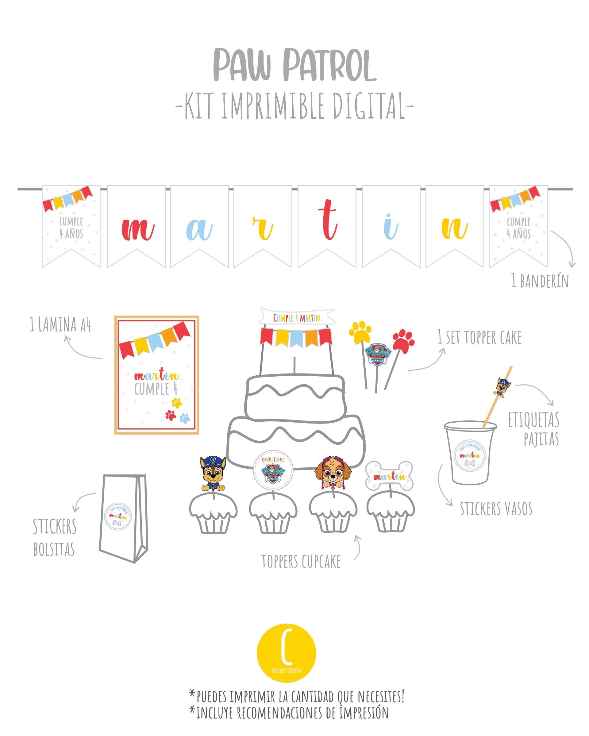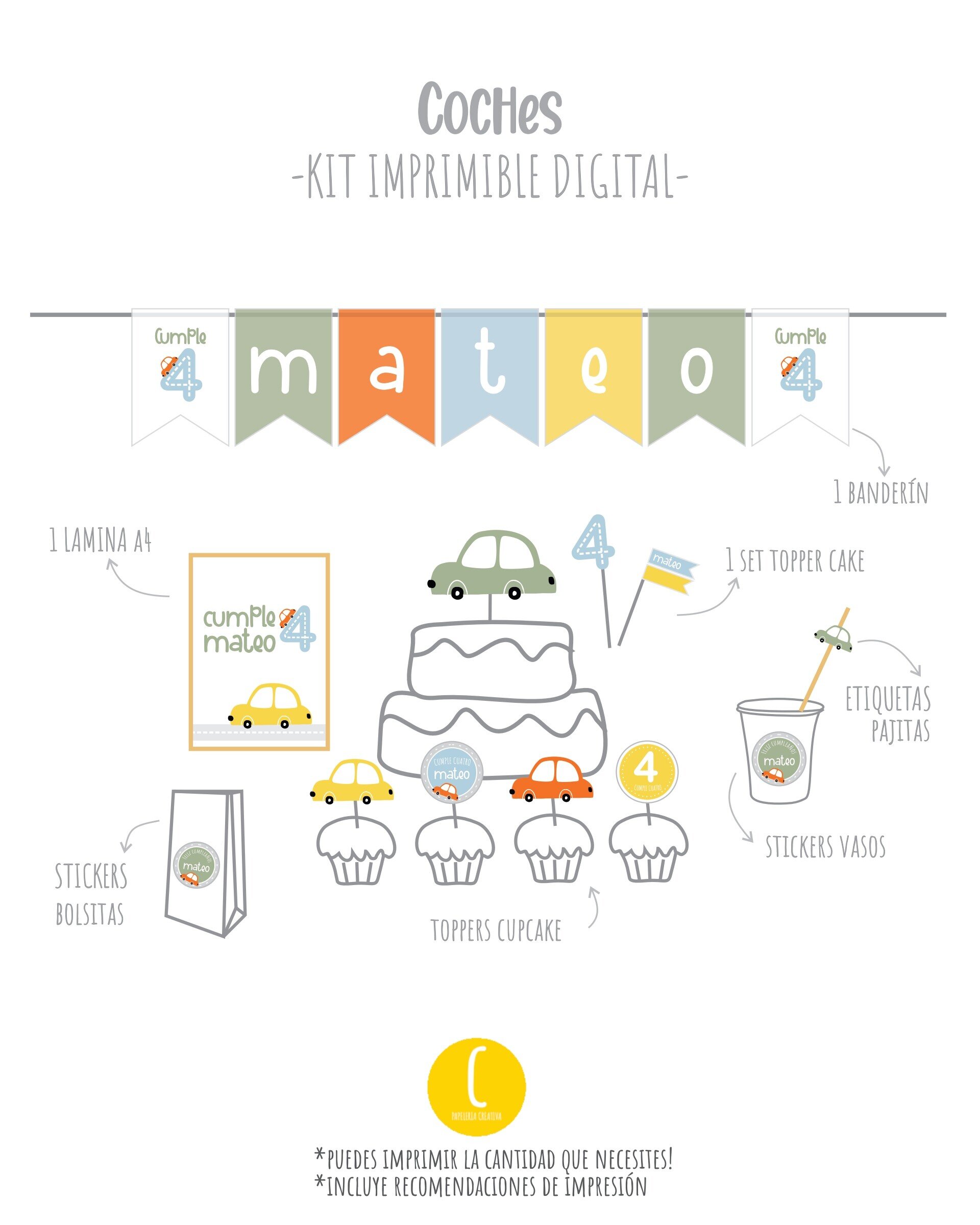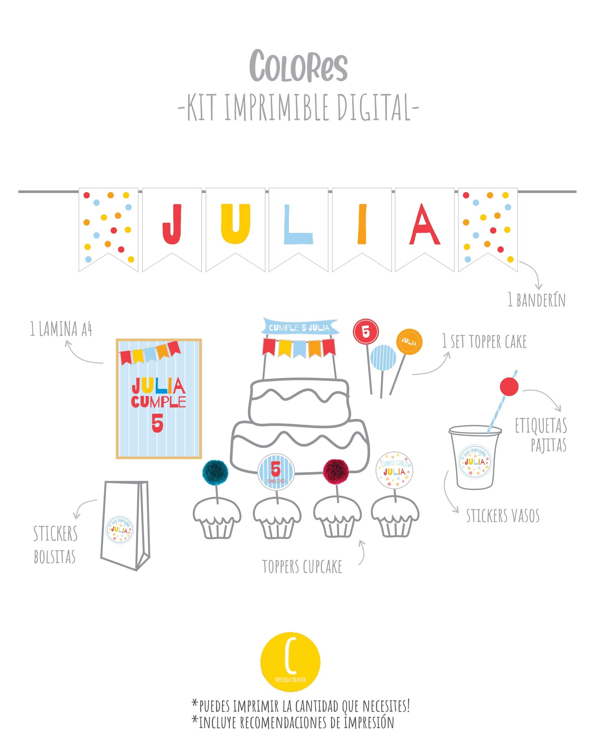Crea una celebración temática y personalizada! Encuentra el kit que mas te guste, añádelo al carrito y luego imprímelo tu mismo!