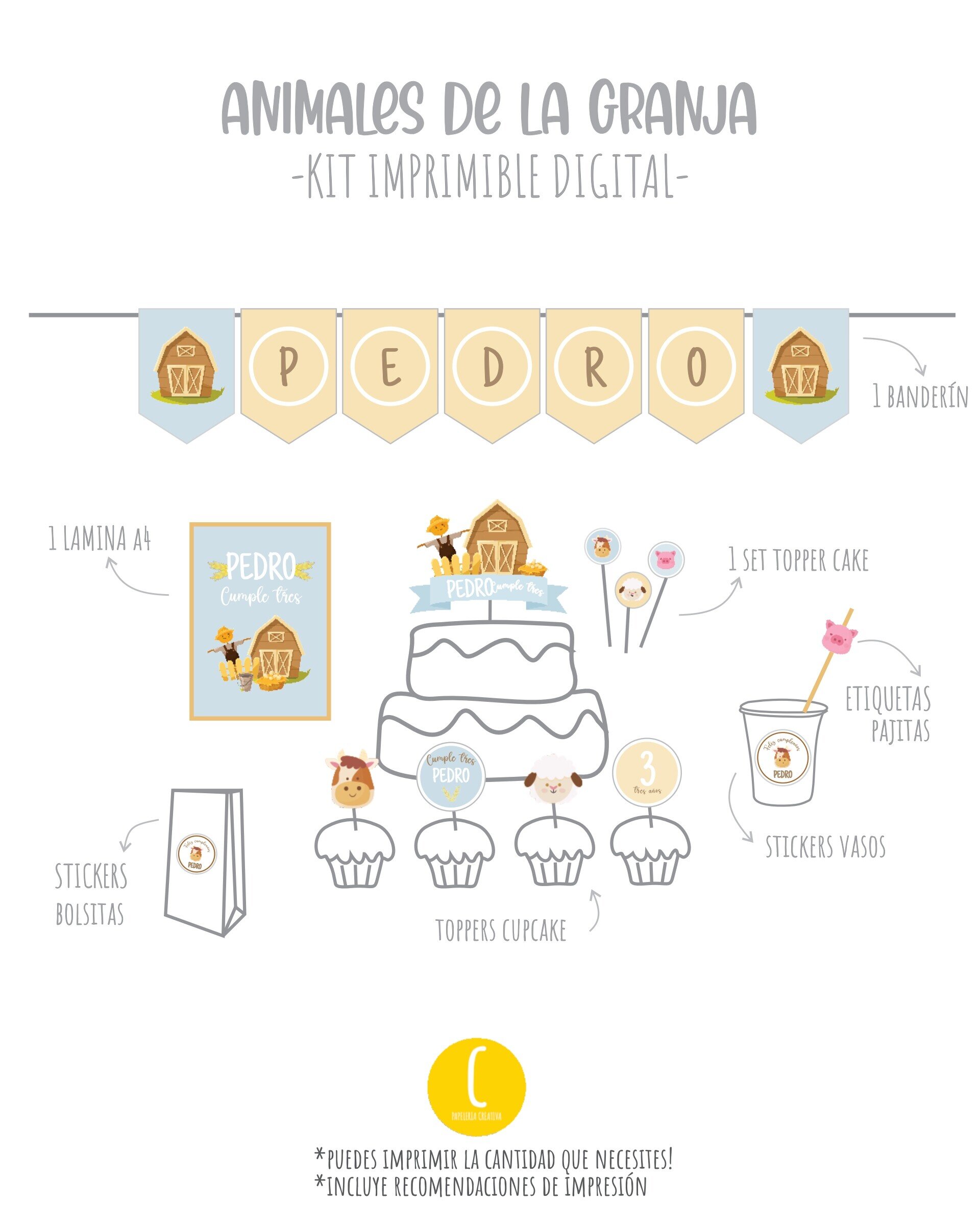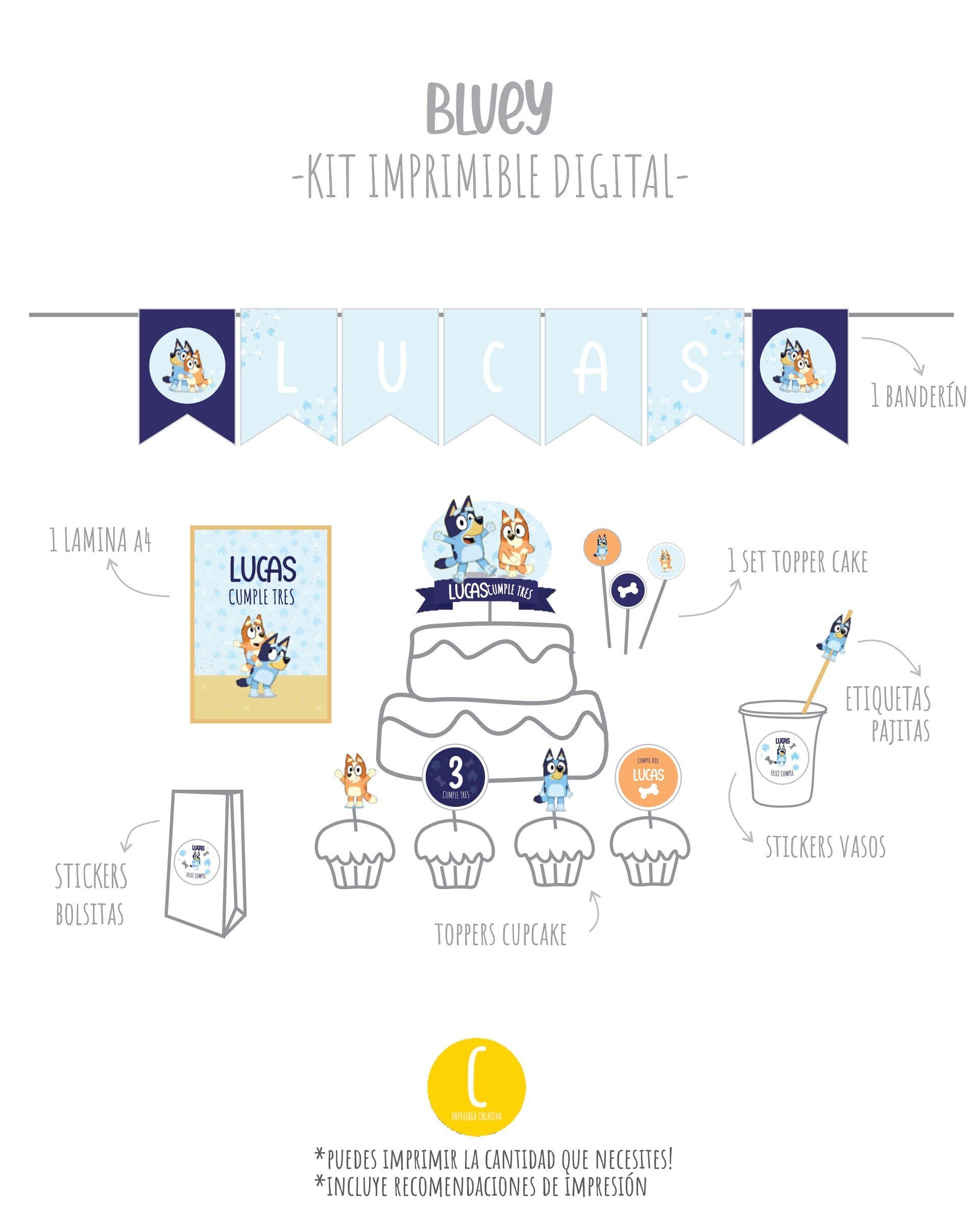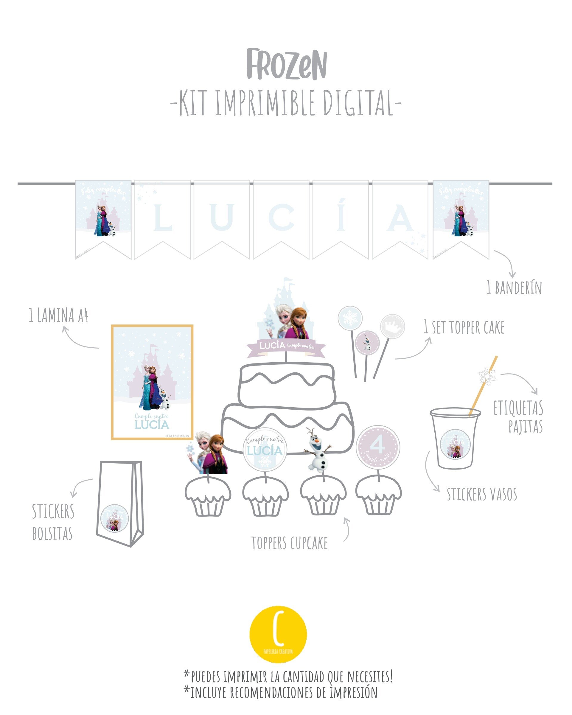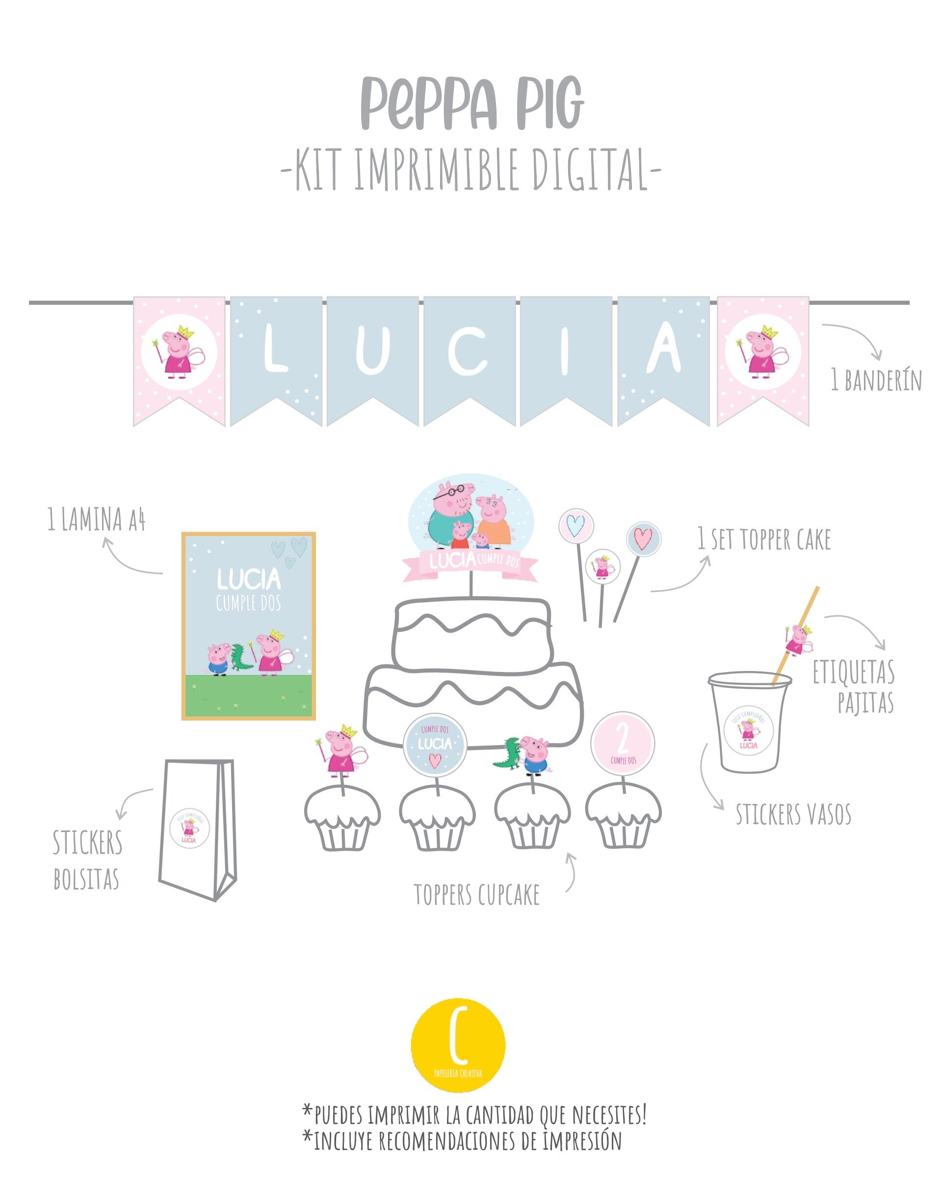 Crea una celebración temática y personalizada! Encuentra el kit que mas te guste, añádelo al carrito y luego imprímelo tu mismo!